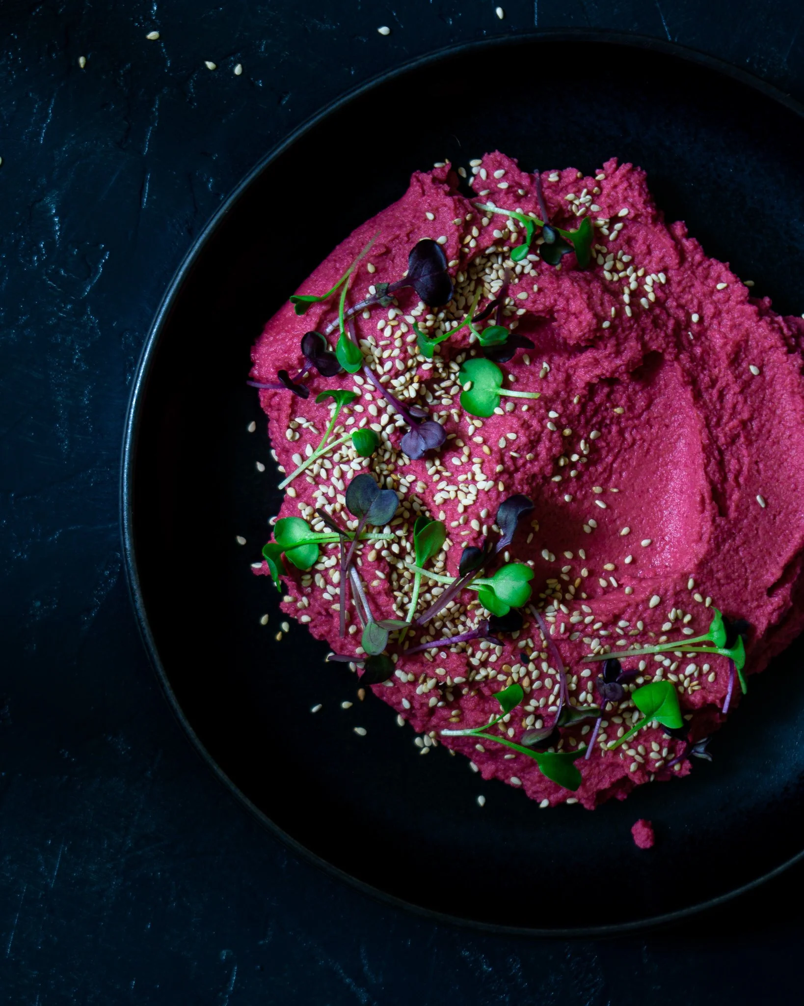 Ein echter Hingucker: Hummus mit Roter Bete.